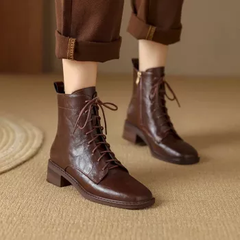 Women’s Vintage Lace-Up Casual Loafers – Low Heel Office Shoes (Size 35-48)