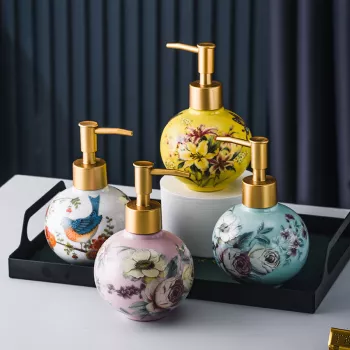 Elegant American Painted Ceramic Soap & Lotion Dispenser – Gold Pump