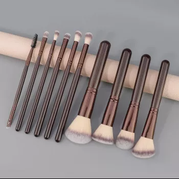 10-Piece Professional Makeup Brush Set – Soft Synthetic Bristles with Wooden Handle