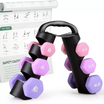 Set of 2 Neoprene Coated Dumbbells with Adjustable Rack – Anti-Slip & Anti-Roll Design