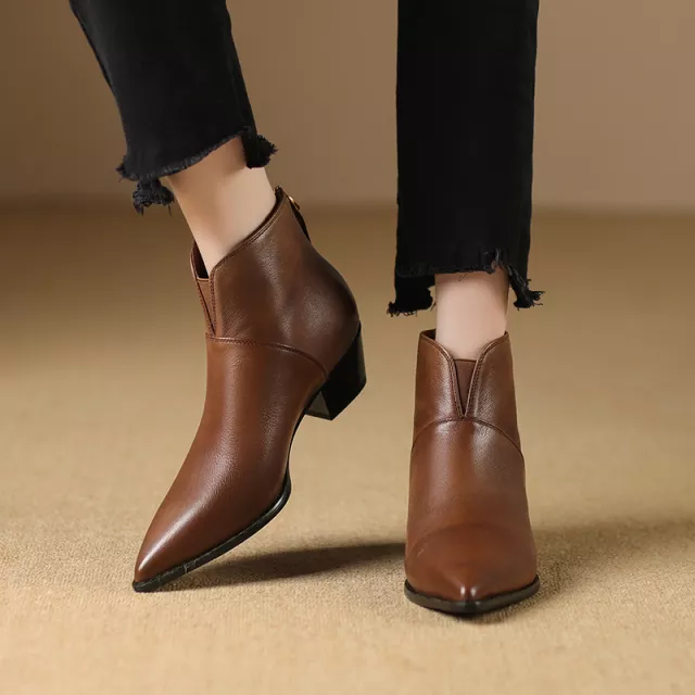 Handcrafted from genuine cow leather, these ankle boots boast superior durability and a luxurious feel that only gets better with time. The short plush lining and insole keep your feet warm and comfortable throughout the cold season, while the square 1.8-inch (4.5cm) heel adds just the right amount of lift for a confident stride. The rubber outsole ensures excellent traction, keeping you steady even on slippery surfaces.
